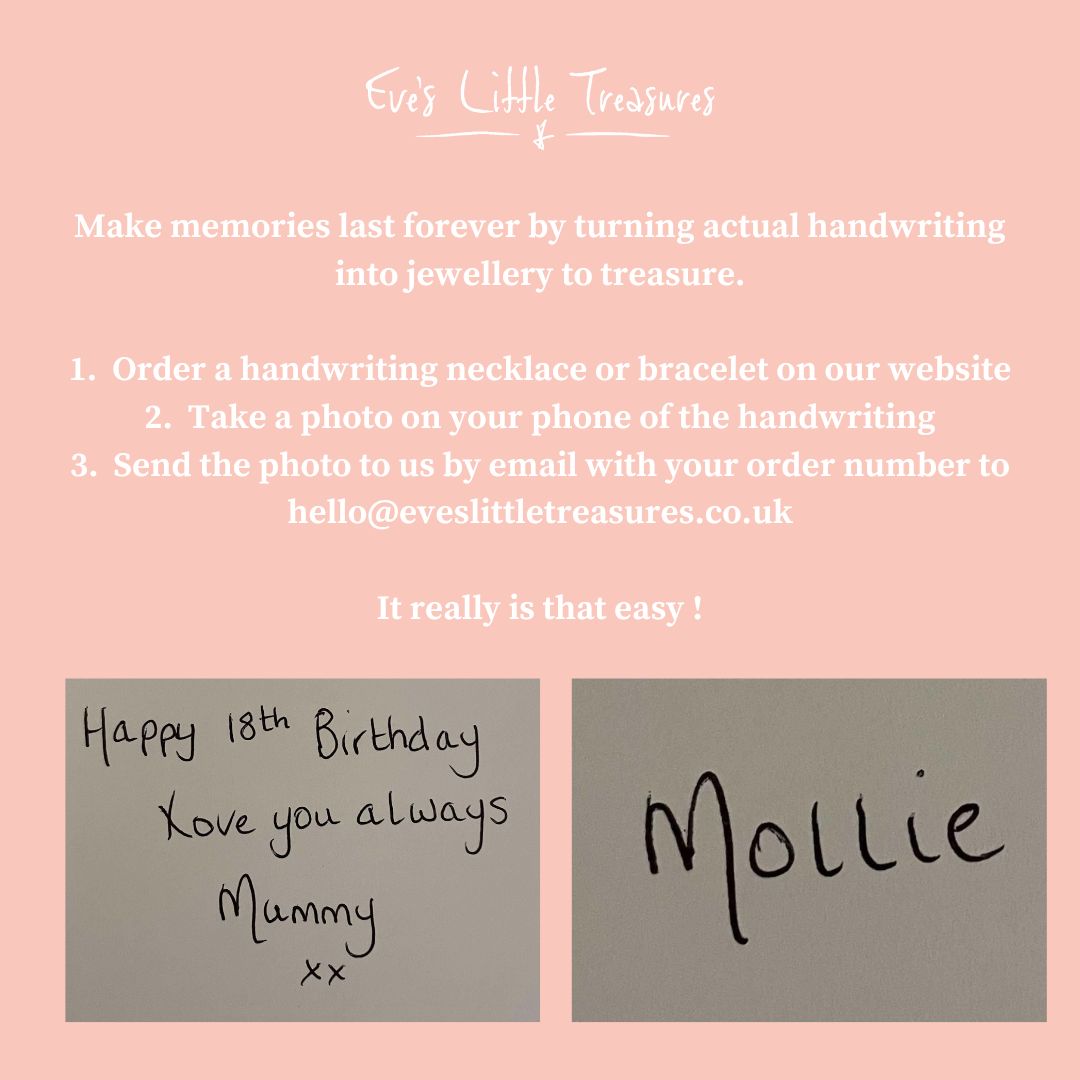 Handwriting jewellery that means the world engraved sterling silver a handwritten keepsake that brings comfort, every day. Hold onto the moments and people that matter